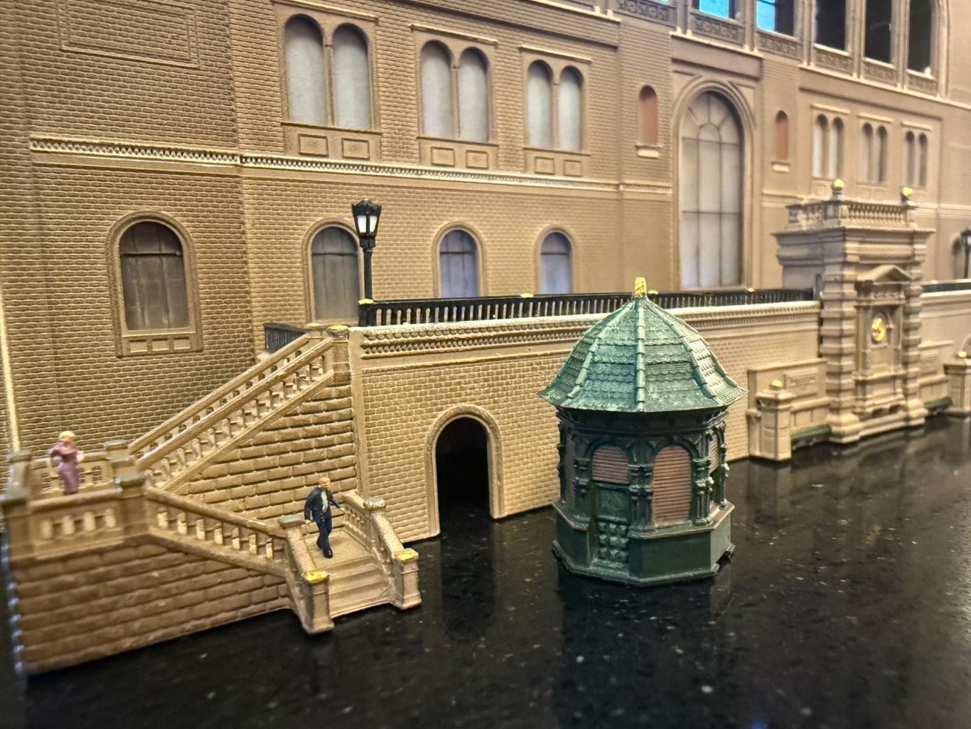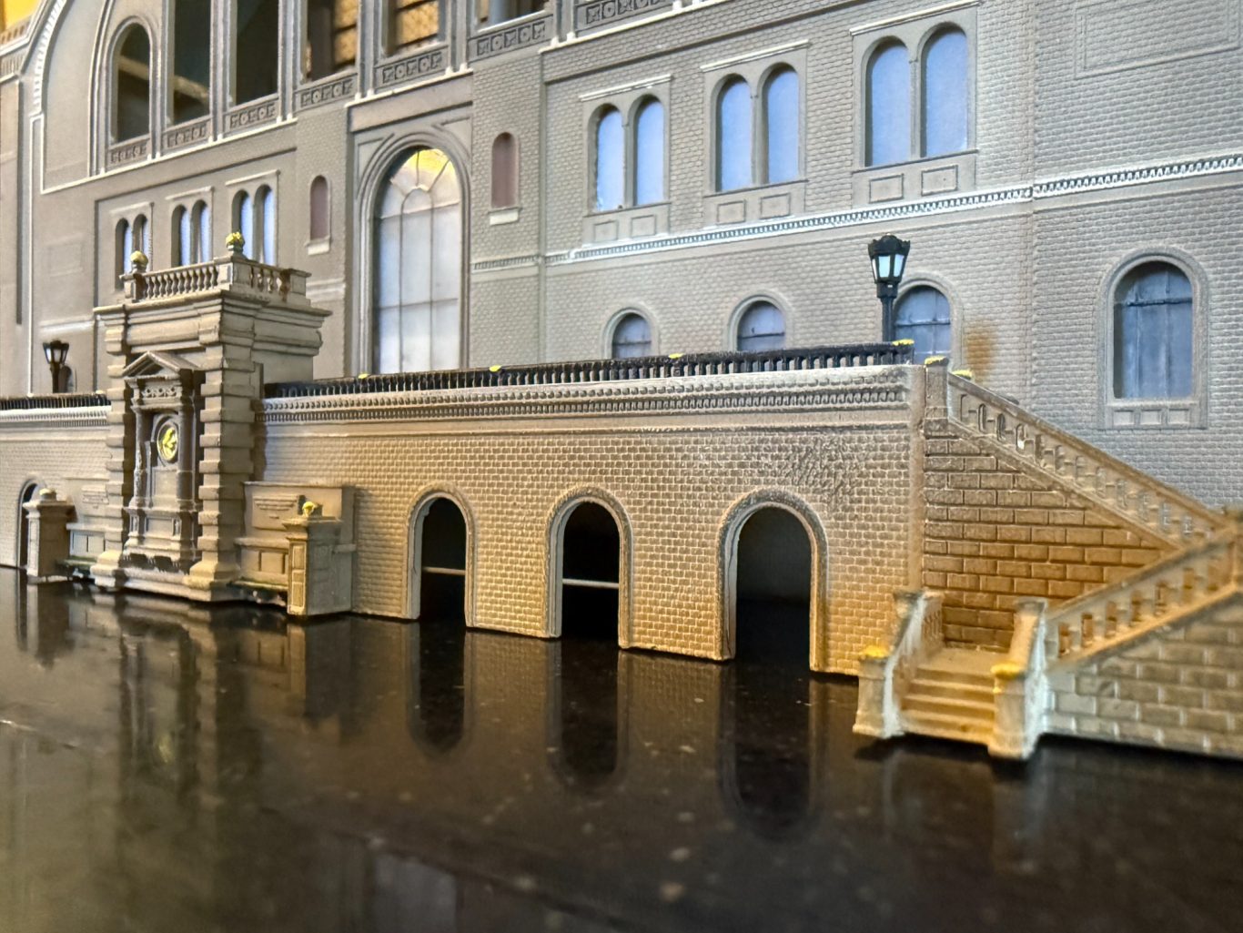 Die Szenerie zeigt ein Modell des ehemaligen Anhalter Bahnhofs in Berlin.